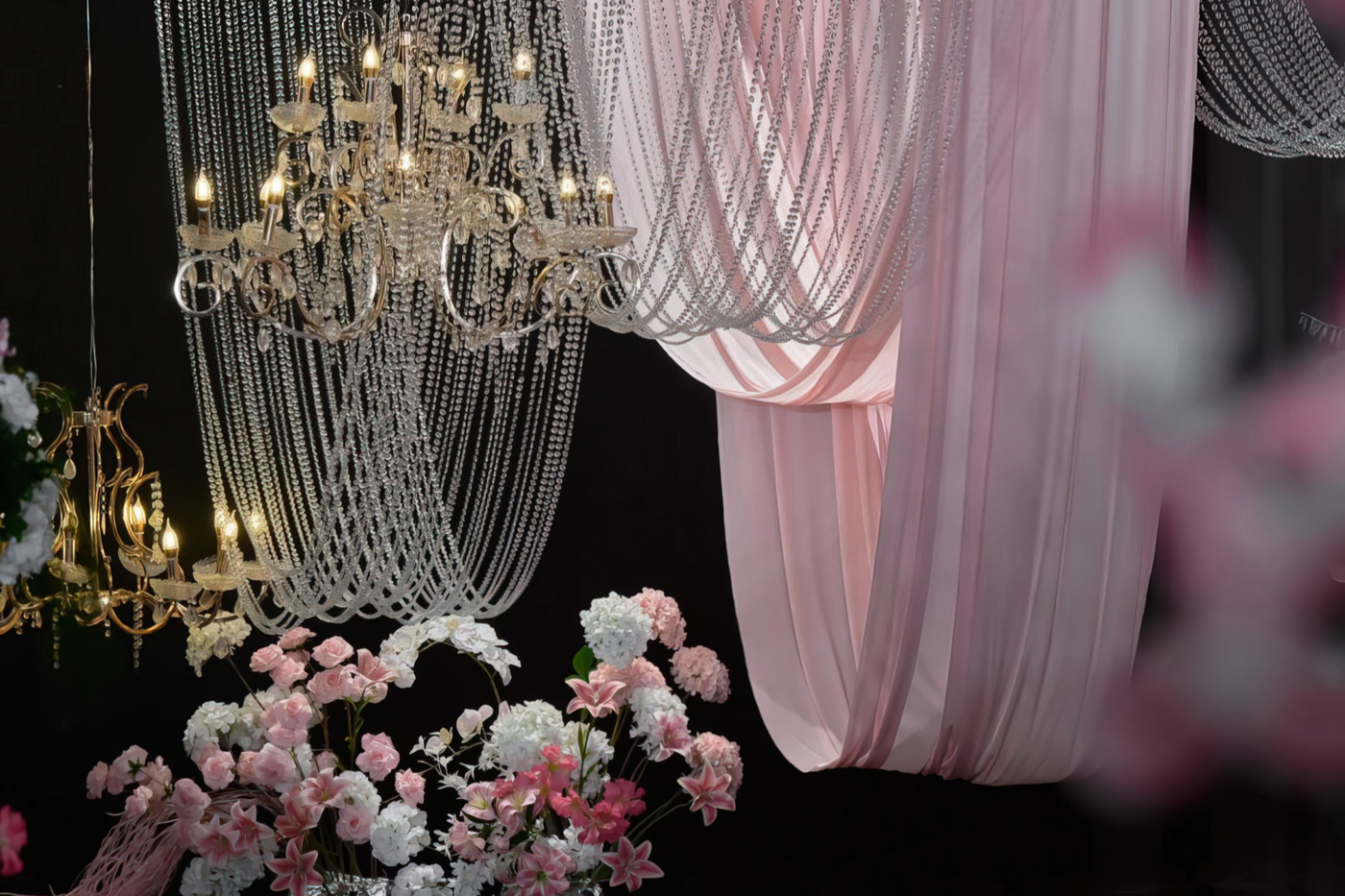世界很暗, 然后你来了, 带着星星和月亮。 婚礼风格:粉白/韩式/布艺 婚礼形式:大棚晚宴[更多…]