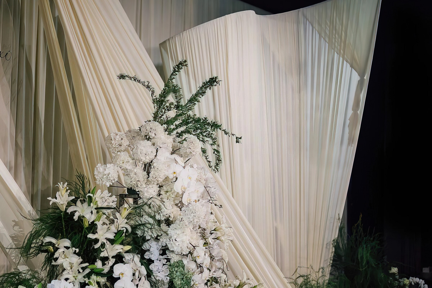 关于美好,要从我遇见你的那天说起。 婚礼风格:白绿/秀场风/韩式/极简 婚礼形式:婚礼晚宴 设计理念:突出爱情的纯粹 两个人从大学到步入婚姻 新娘纯真的笑容感染每一个人 简单大气是他们待人处事的风格[更多…]